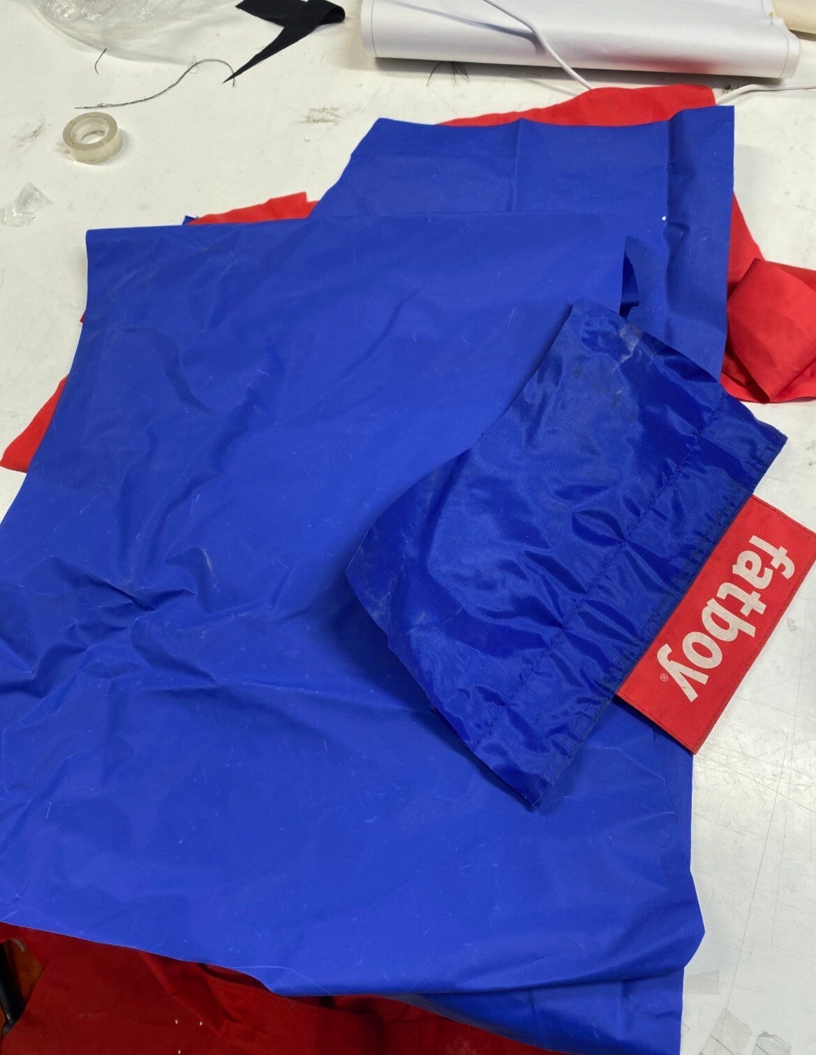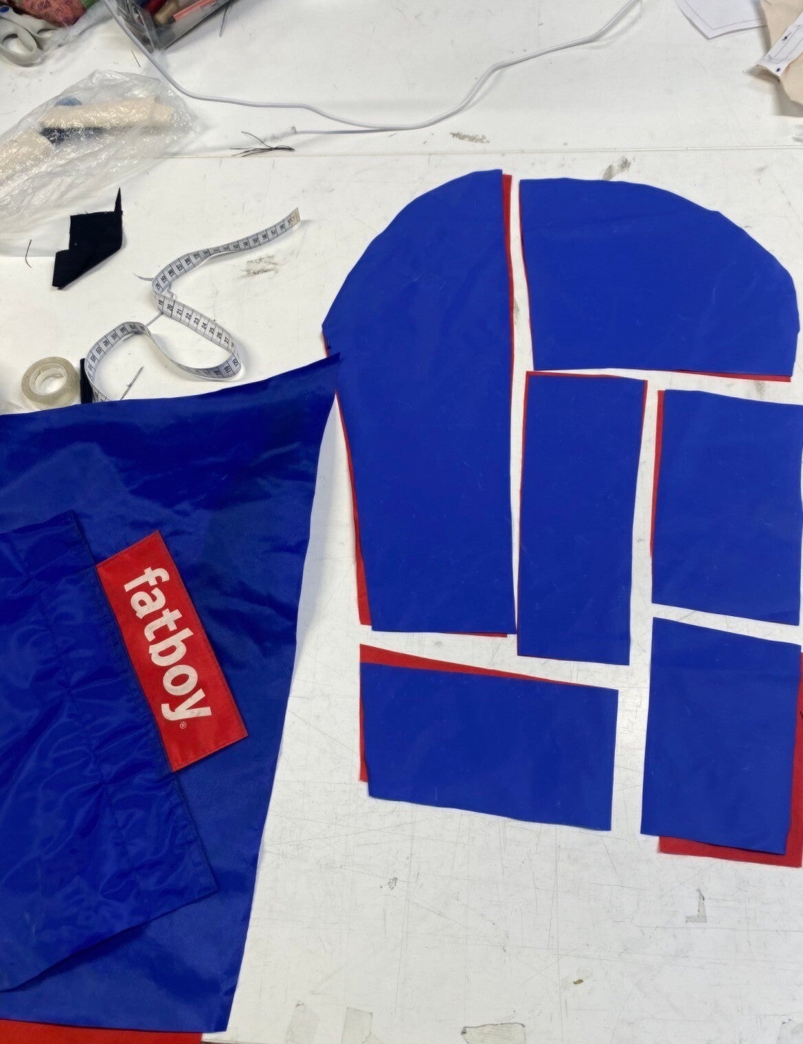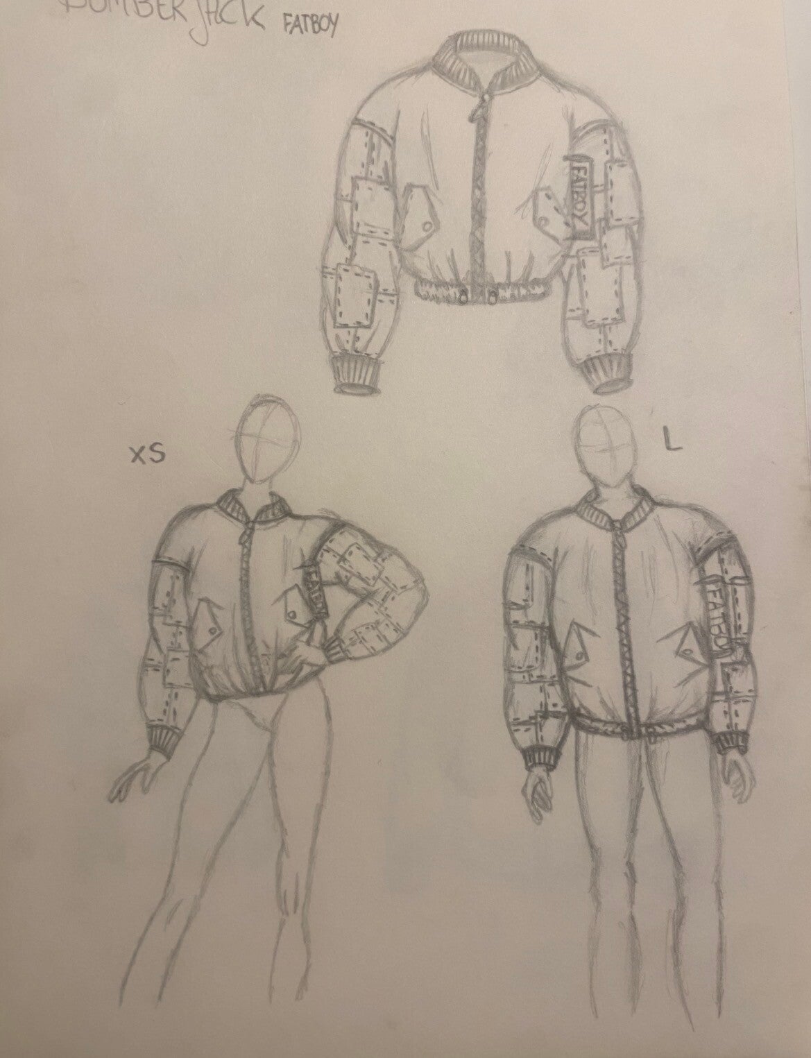 Fatboy heeft geen kledinglijn, maar hier heb ik verandering ingebracht. Zo heb ik deze collectie ontworpen voor het niet-mode merk. Na het verzamelen van de merkwaarden heb ik deze om kunnen zetten in vorm, kleur en materiaal. Ik heb gekozen om voor zowel volwassenen als voor kinderen een collectie te ontwerpen. Zo blijft het familie gevoel van het merk bestaan. Daarnaast heb ik van oude zitzakken een bomber uit de collectie gemaakt.